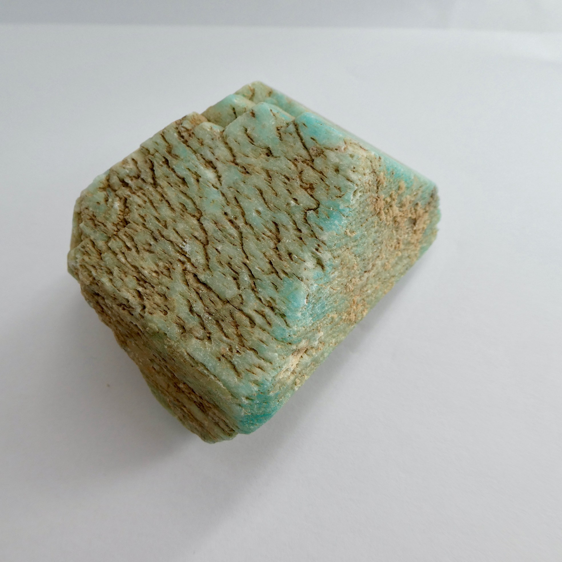 Amazonit Rohkristall- Malawi, hellblau mit Muttergesteinresten, ca 8x 6 cm, Höhe 4cm, 345g