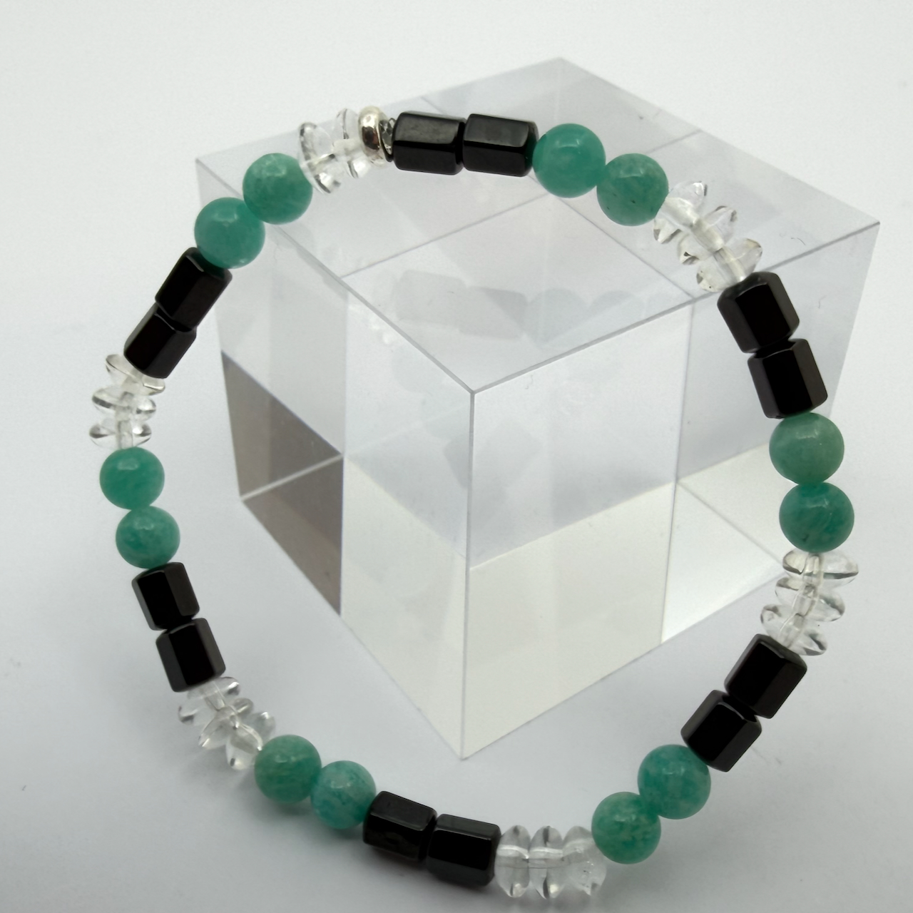 Produktinformationen "Amazonit - Turmalin schwarz Schörl - Bergkristall Design Armband - Männerarmband"