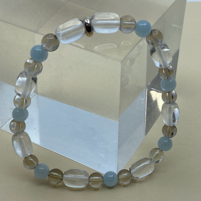 Aquamarin - Bergkristall - Rauchquarz Armband Unikat Design größer Männer