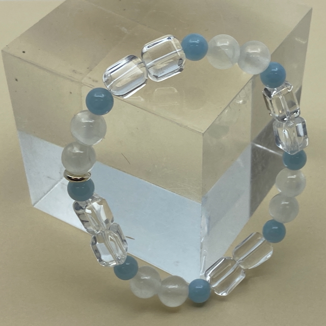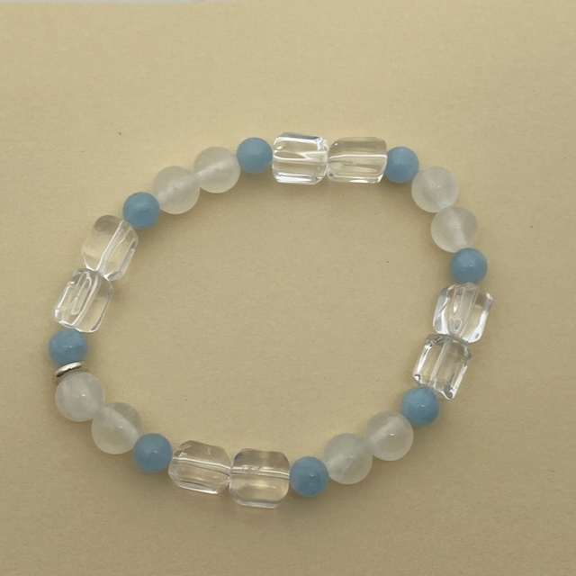 Aquamarin - Selenit - Bergkristall Armband Unikat Design größer Männer