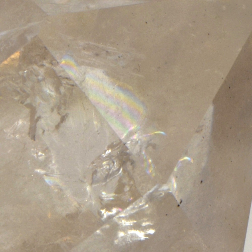 Bergkristall, Kristall Konglomerat, Doppelender mit Regenbogen, eine Seite Sammelkristall, Kristall mit Chlorid , Herkunft Brasilien, Größe ca. 14,5 cm hoch, 2-6 cm breit, 2,5-3,5 cm tief, Gewicht 376 gr.