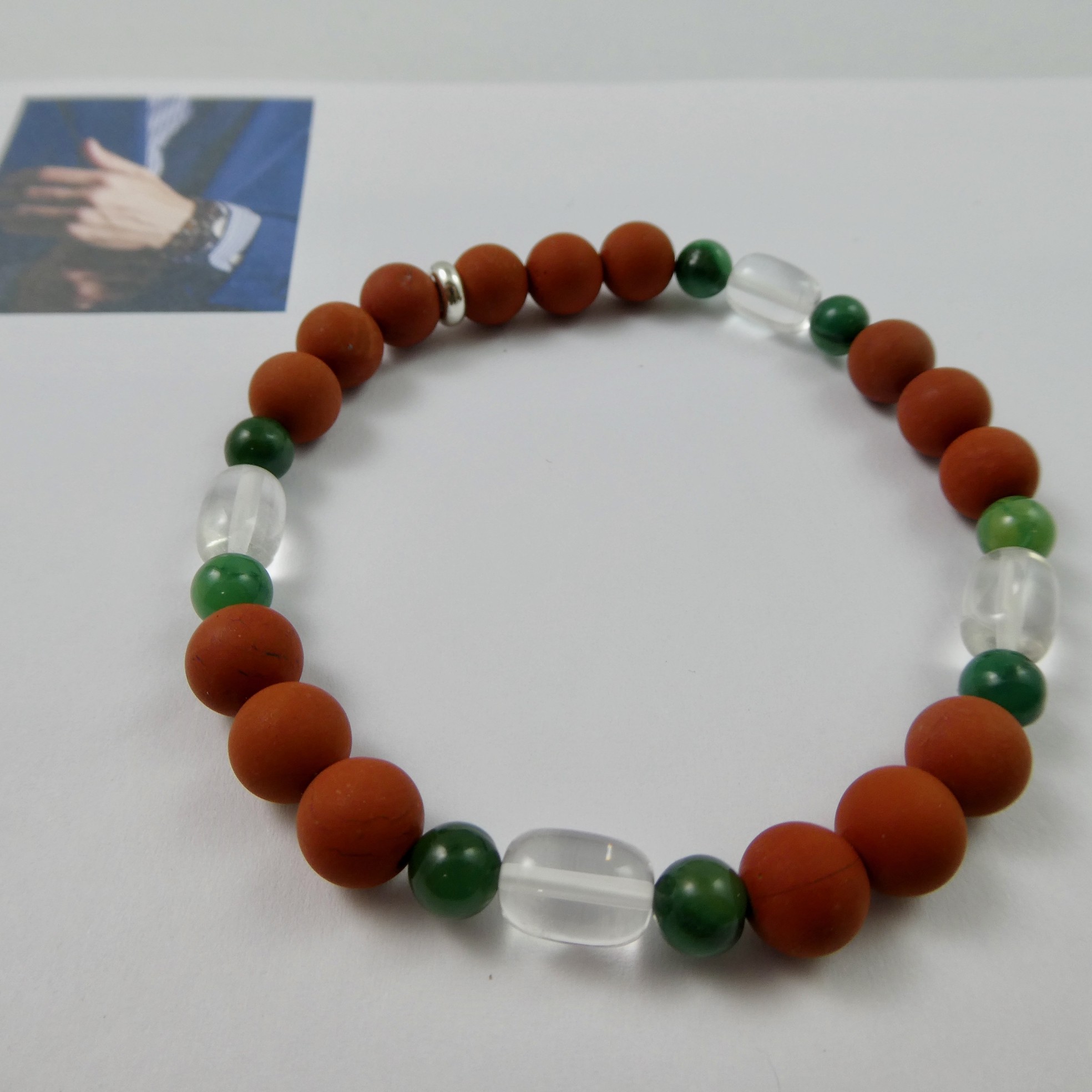 Produktinformationen "Bergkristall - Jaspis rot - Prasemquarz Design-Armband Männerarmband"