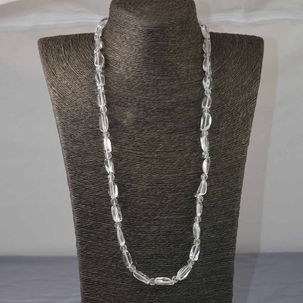 Halskette Bergkristall barock ca. 15-18x0,8 cm, Bergkristall Kugeln facettiert 6 mm, sehr klare Bergkristalle, Länge 72 cm mit Schließe Silber 925-/ Karabiner ca. 16 mm