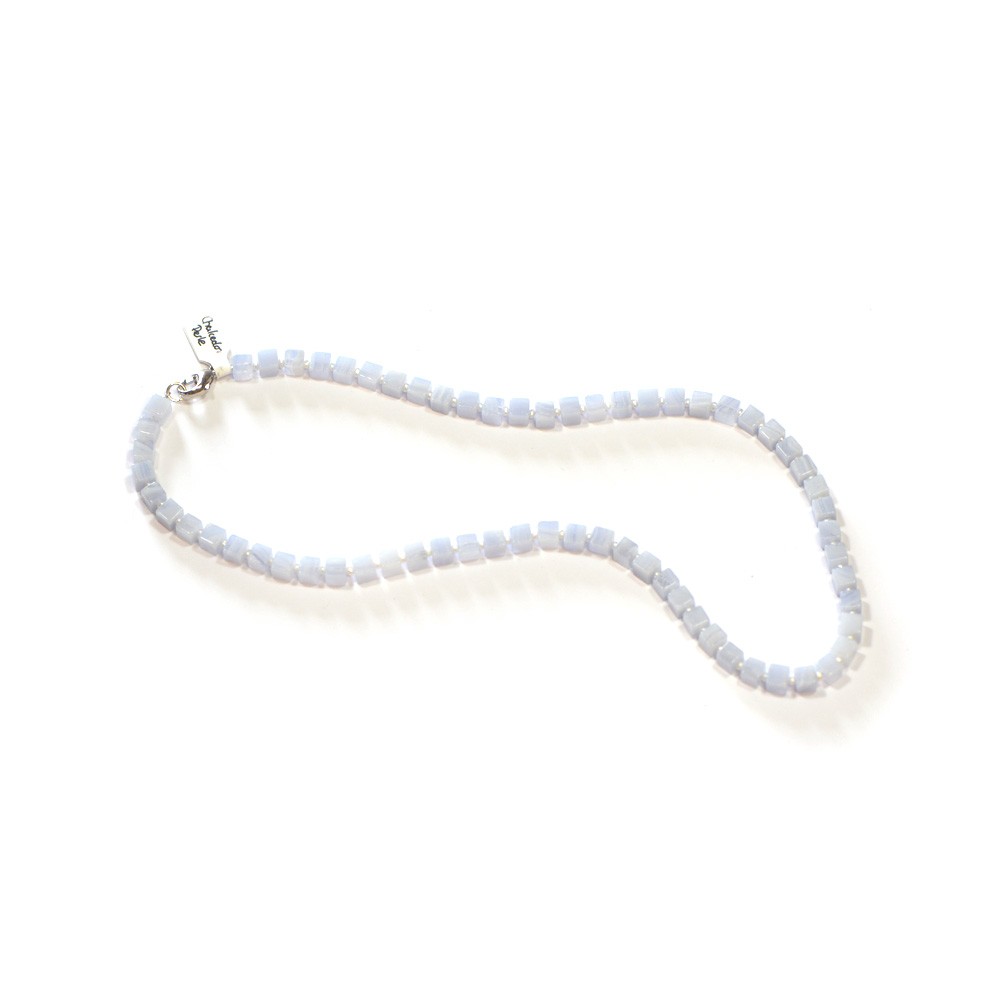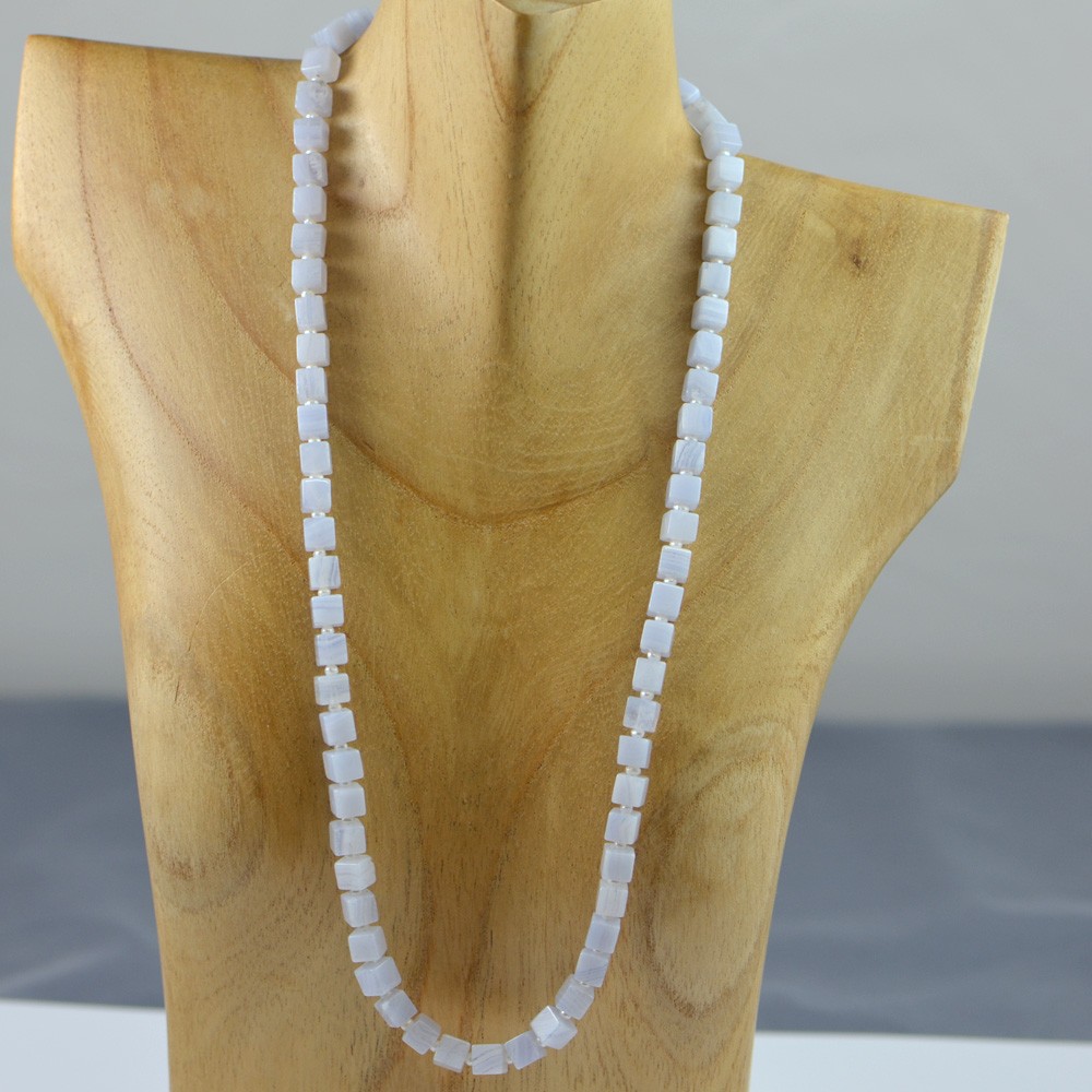 Halskette Chalcedon Würfel ca. 6x6mm, Süsswasser-Perlen ca. 3mm, Länge 53,5cm, Silberschließe S-Karabiner 925-/ ca. 16 mm.