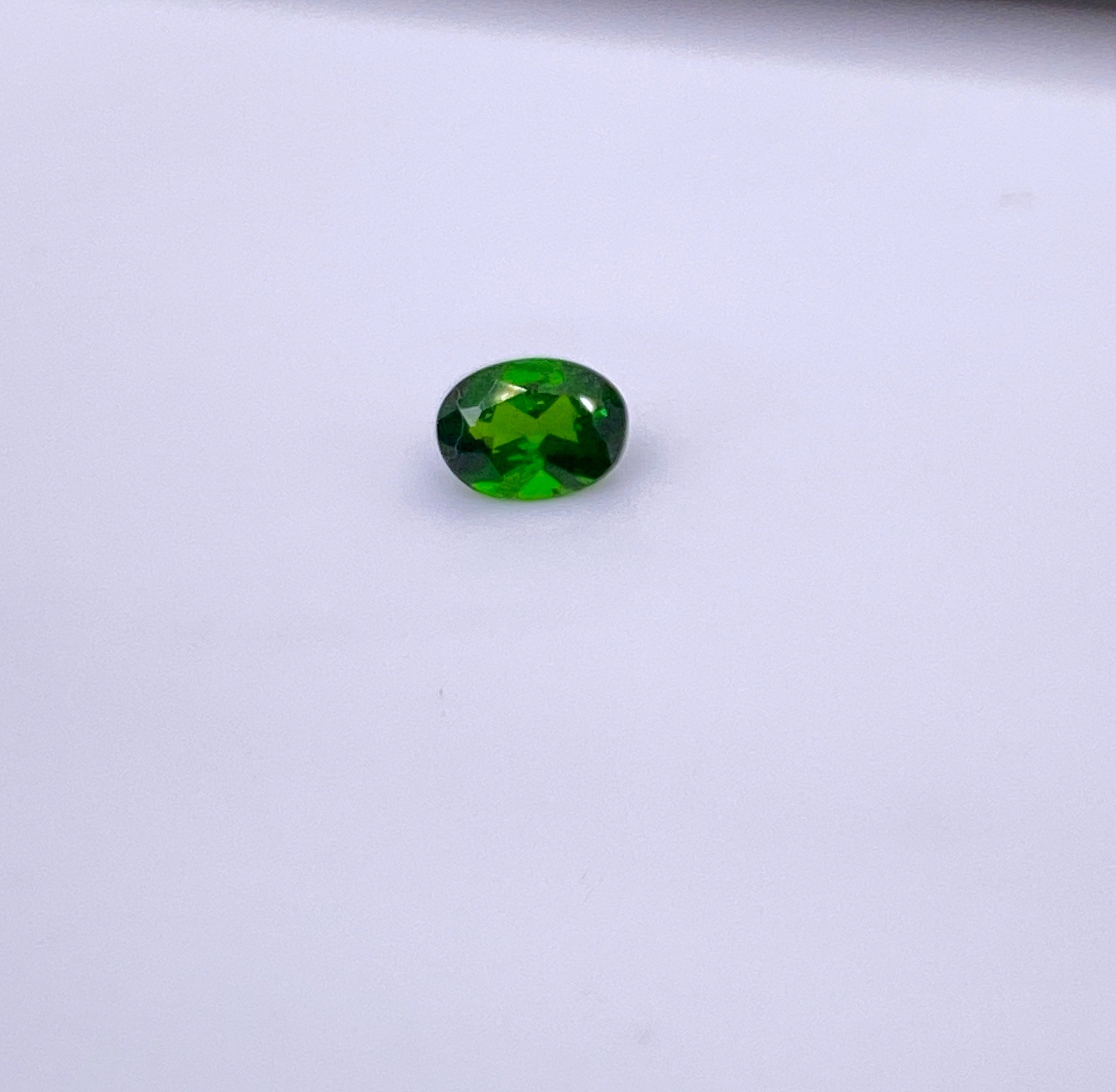 Chromdiopsid 1,24 Karat, Sternschliff, Oval-Form, Größe 7,9 x 5,9mm, leuchtendes grün, natürliche kleine Einschlüsse erkennbar, Herkunft Russland