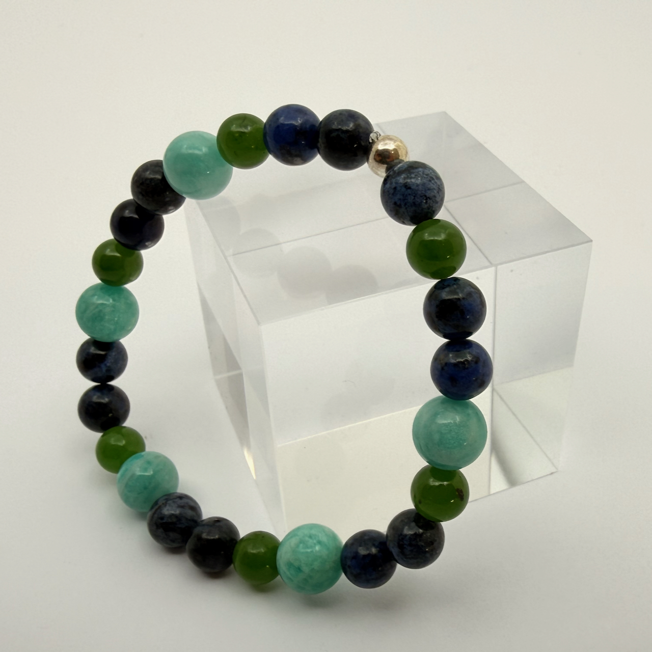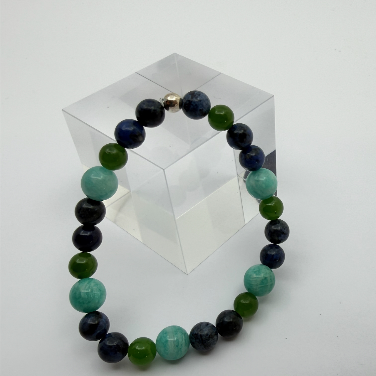Dumortierit - Jade Nephrit - Amazonit Design Armband Unikat Männerarmband