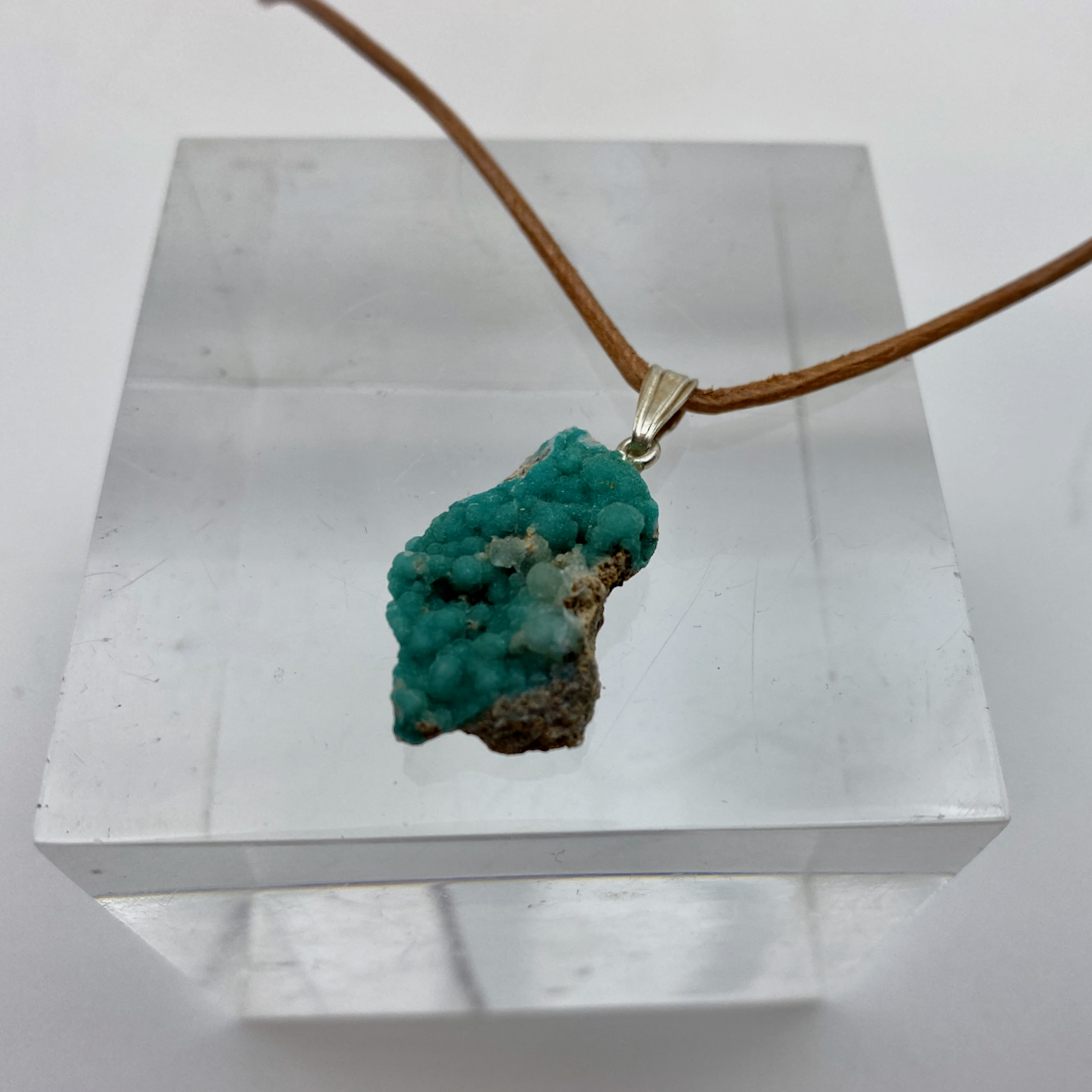 Hemimorphit blau-türkis Natur-Kristall Anhänger Silber