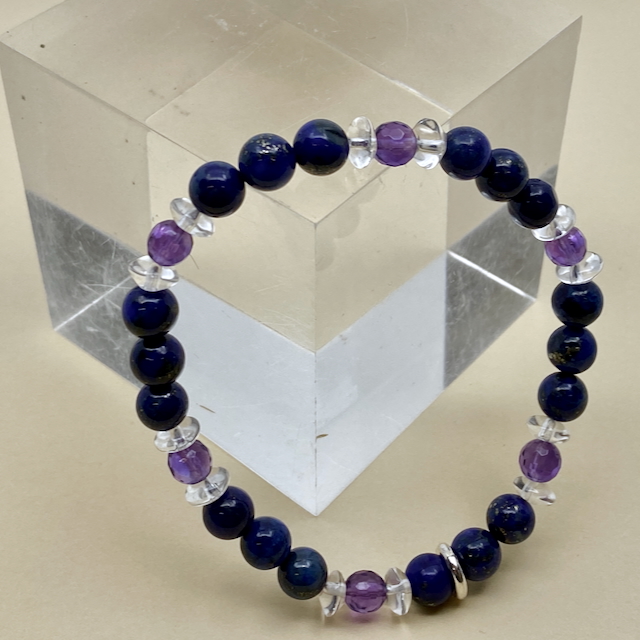 Lapis - Lazuli, Amethyst - Bergkristall Armband Unikat Design größer Männer