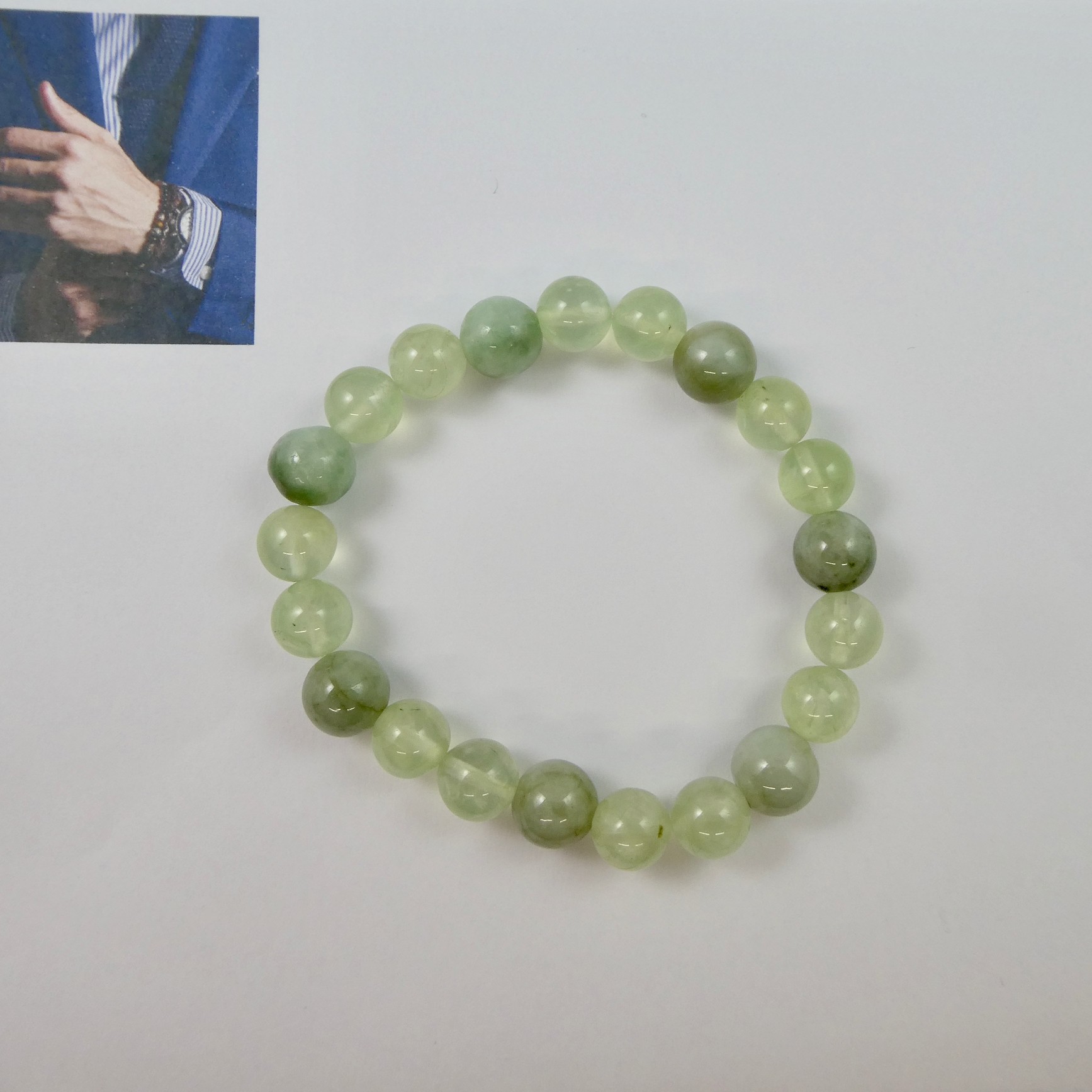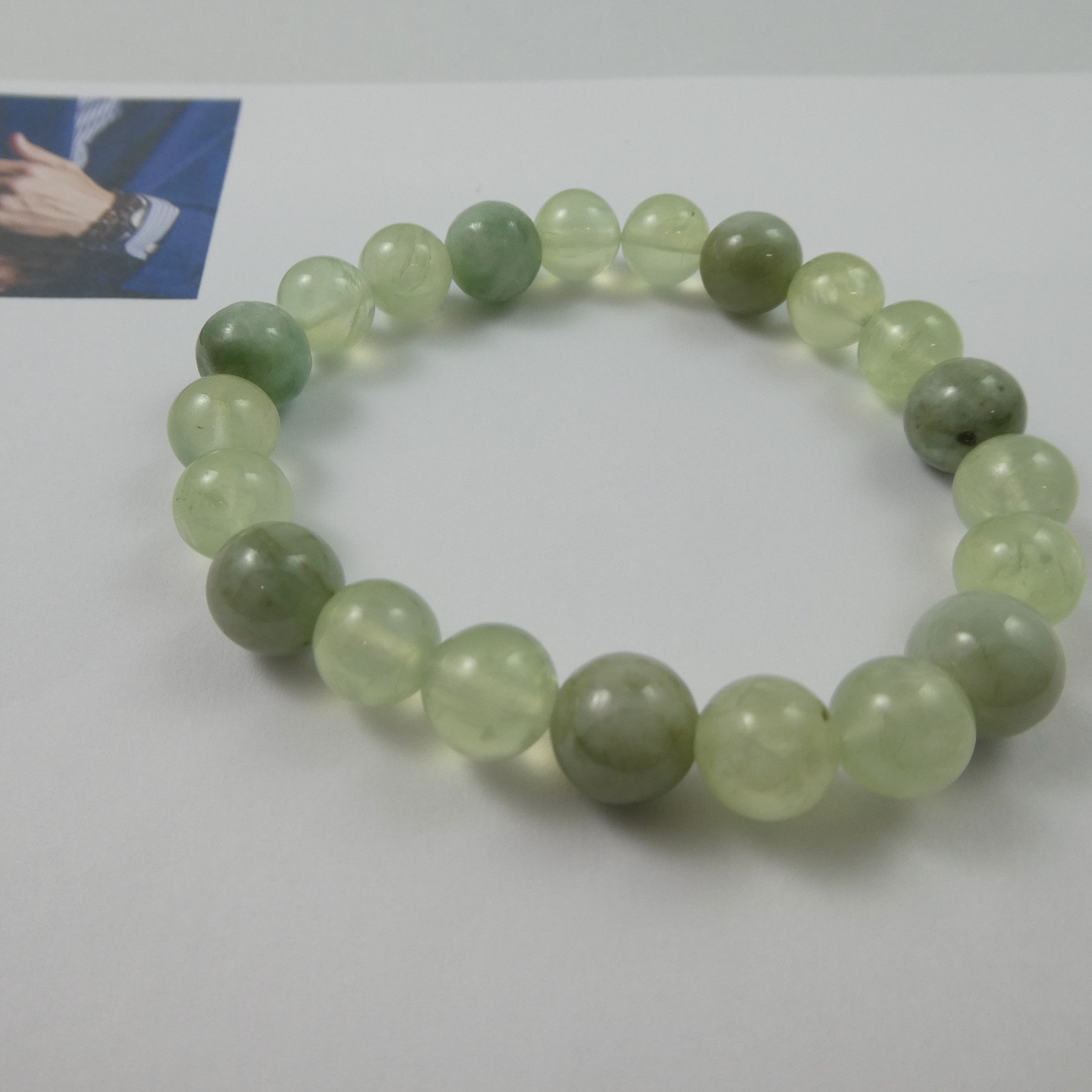 Armband - Männerarmband mit Prehnit Kugeln 10mm, Jadeit Kugeln 11mm, 21cm