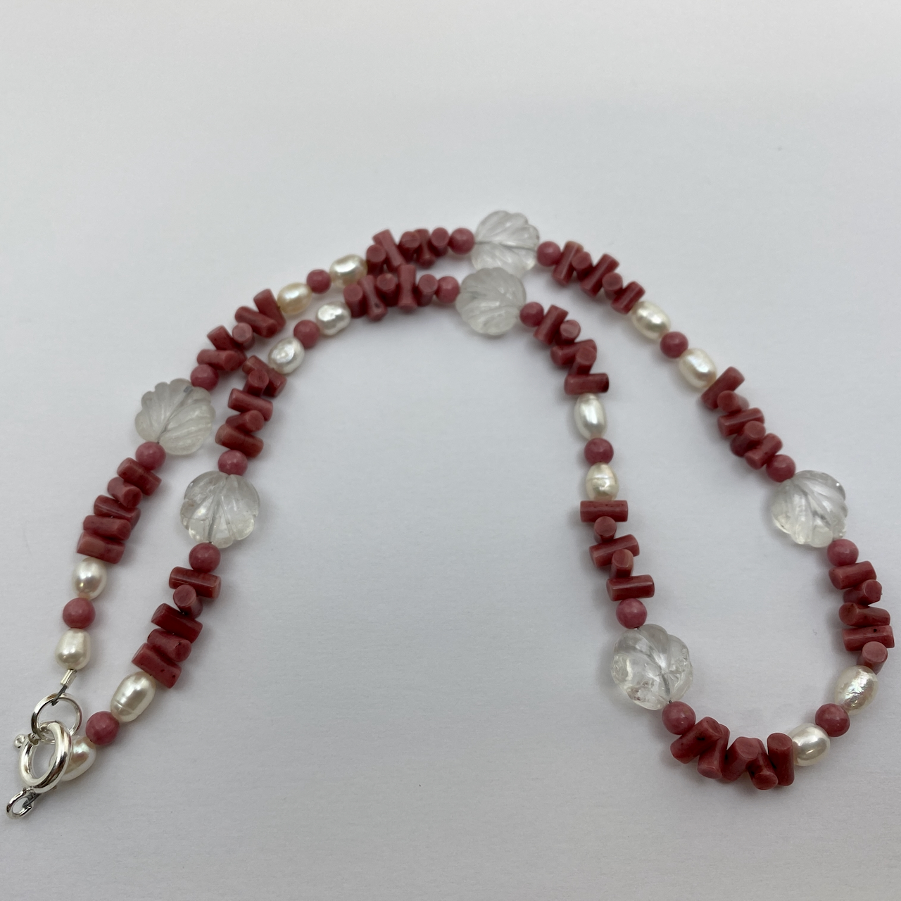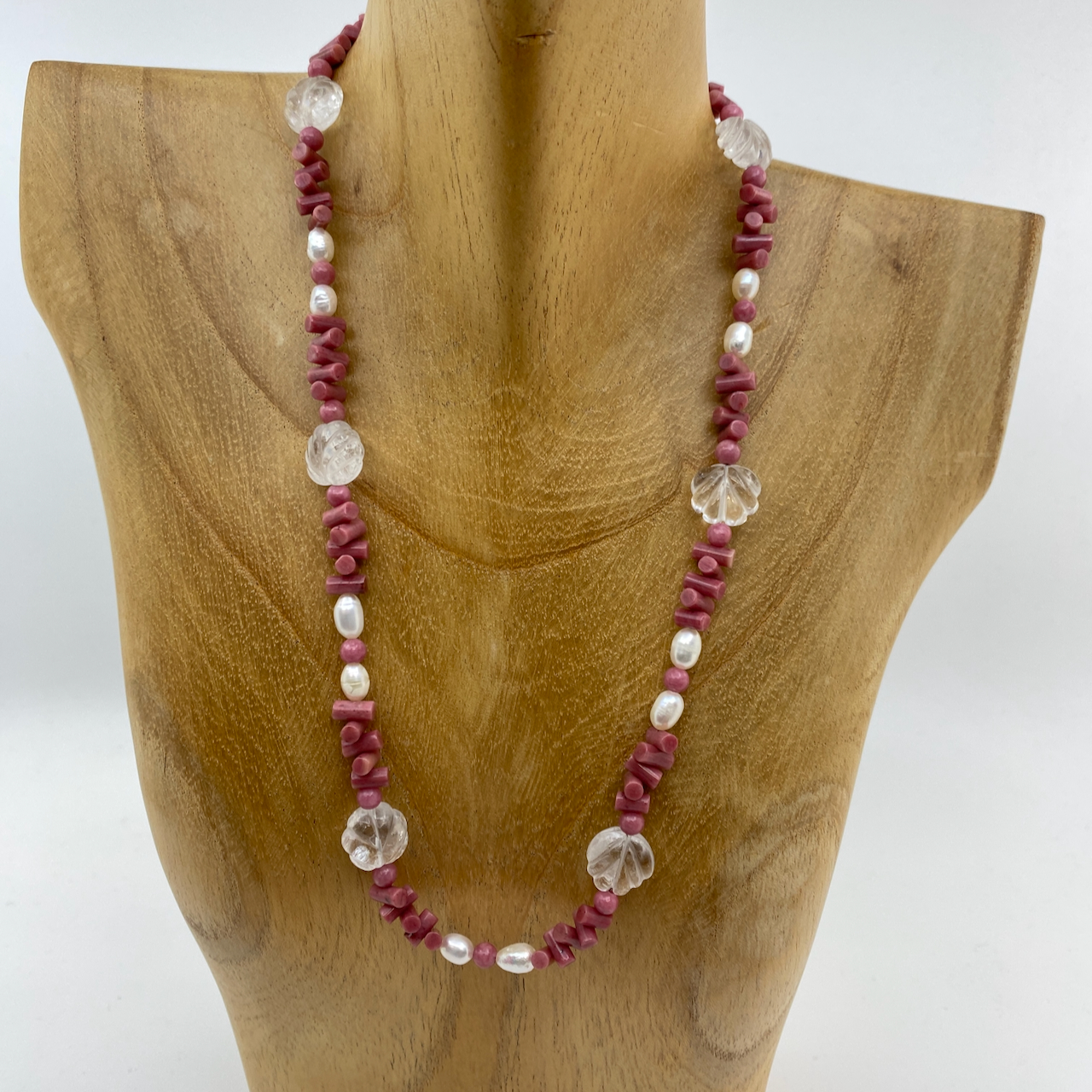 Rhodonit - Perlen - Bergkristall Edelstein-Collierkette