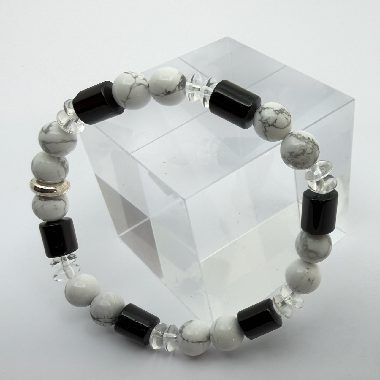 Schörl Turmalin schwarz - Magnesit - Bergkristall Design Armband Unikat Männerarmband