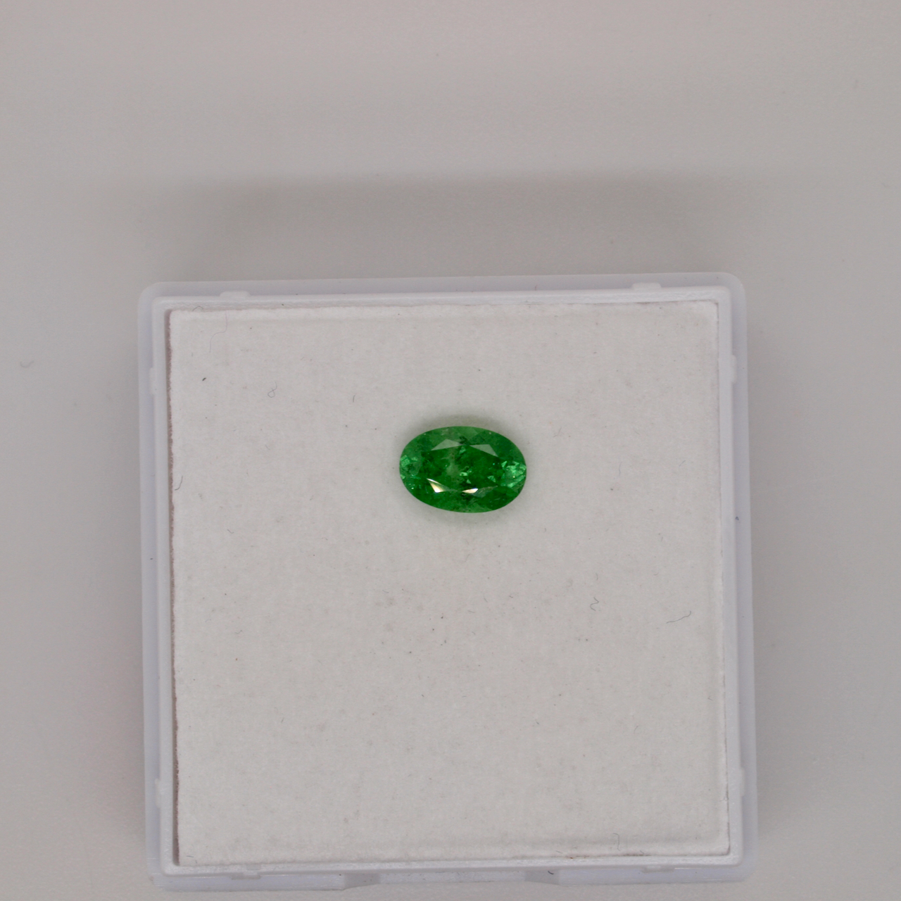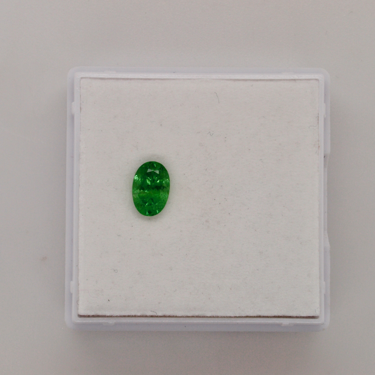 Tsavorith facettiert oval 7,4 x 5mm Höhe 3,9mm, 1,03Karat,Kenia, grün, Einschlüße erkennbar,