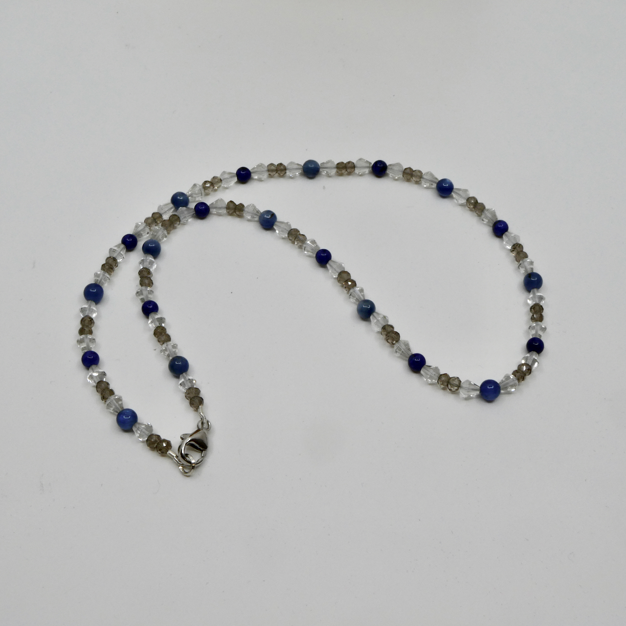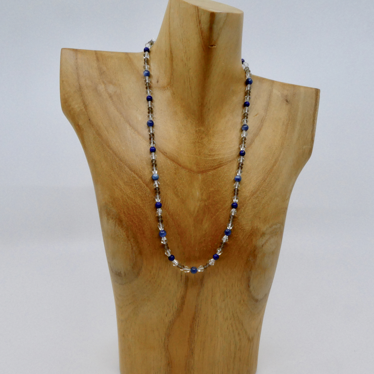 Disthen blau - Lapis Lazuli - Rauchquarz - Bergkristall Design Edelsteinkette
