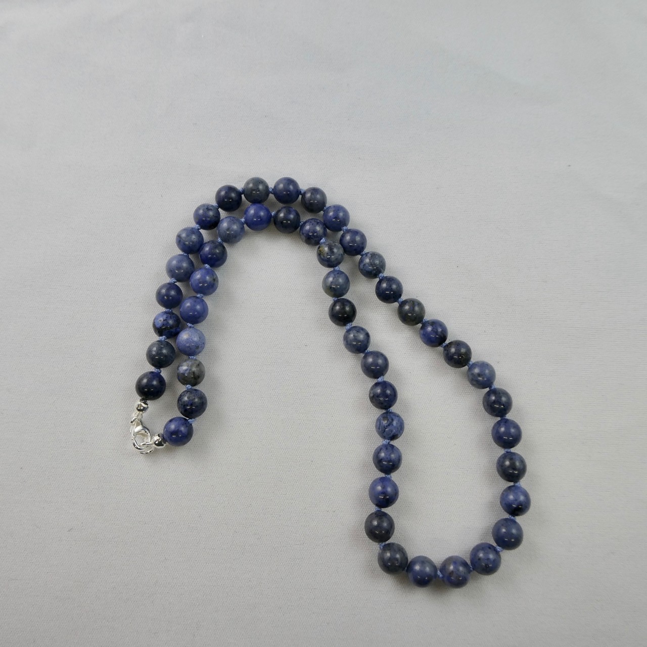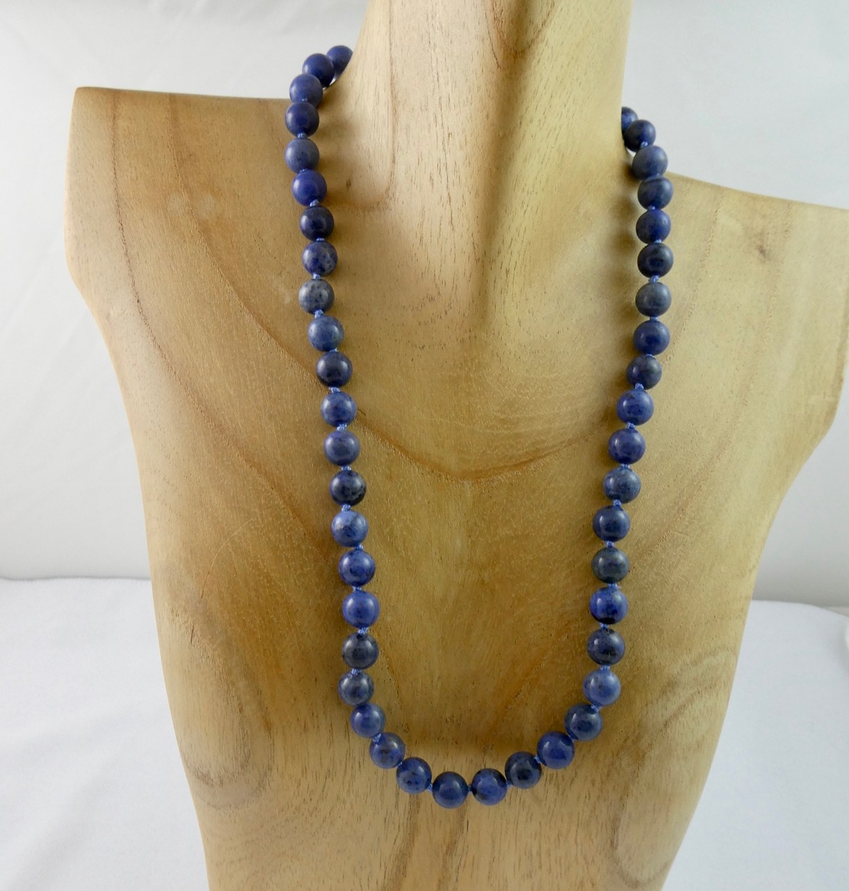 Dumortierit Edelsteinkette, Kugeln 8mm, 46cm, schöne blaue Farbe auf Perlseide