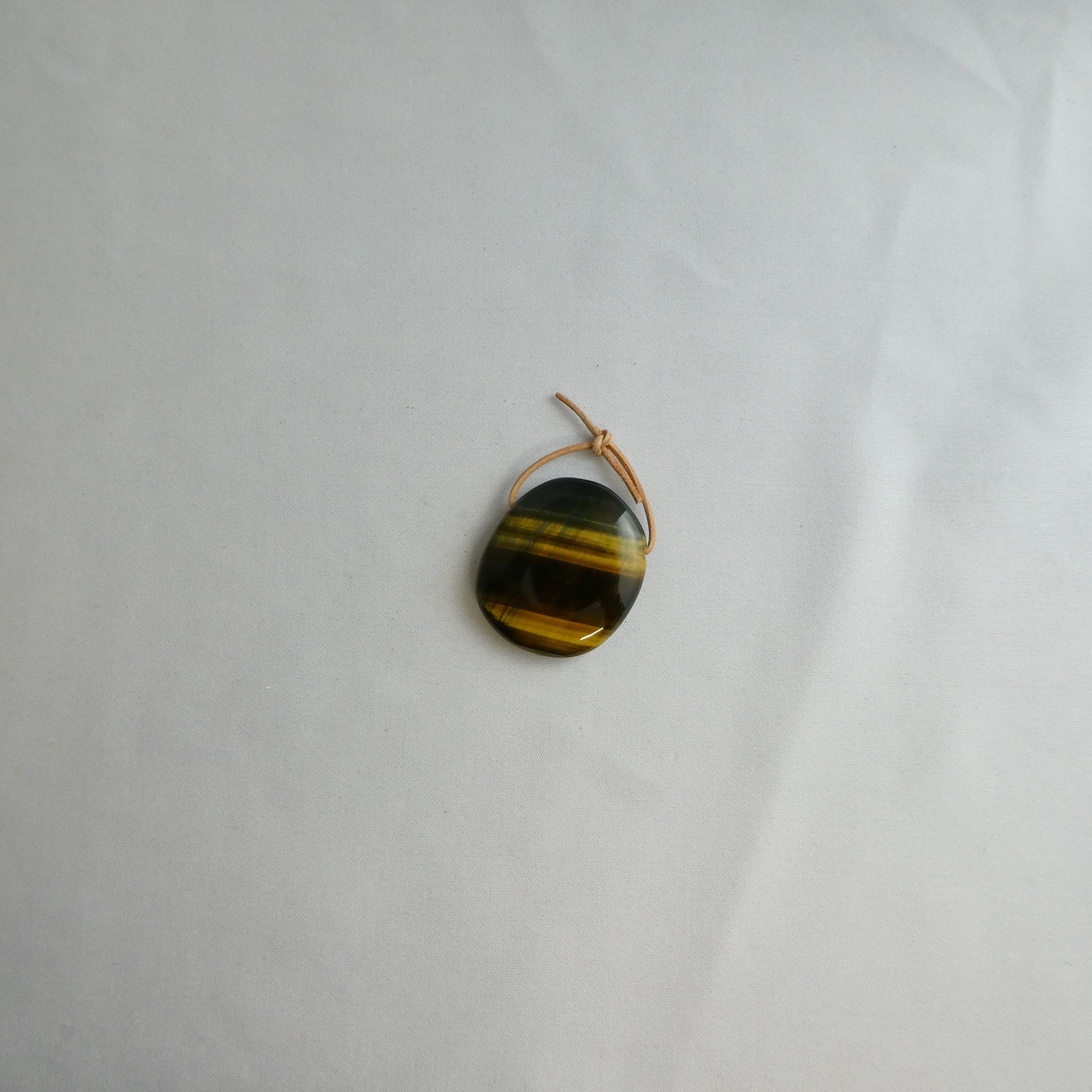 Falkenauge mit Tigerauge Trommelstein gebohrt Anhänger, Süd-Afrika, ca. 4 x 3,5x0,8cm; 30g