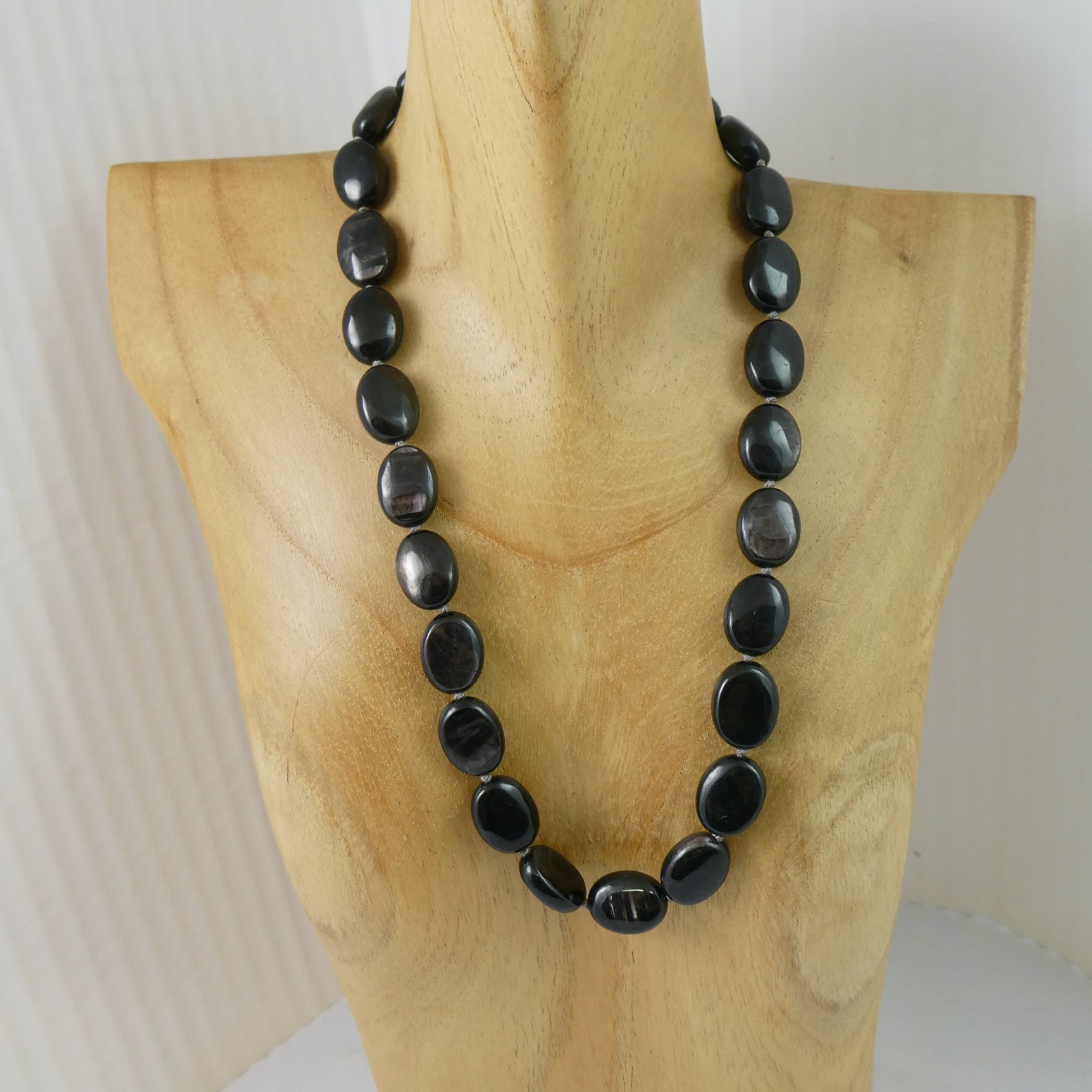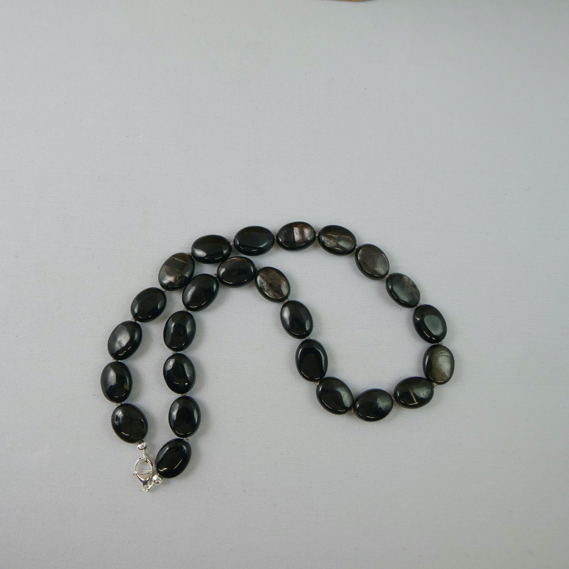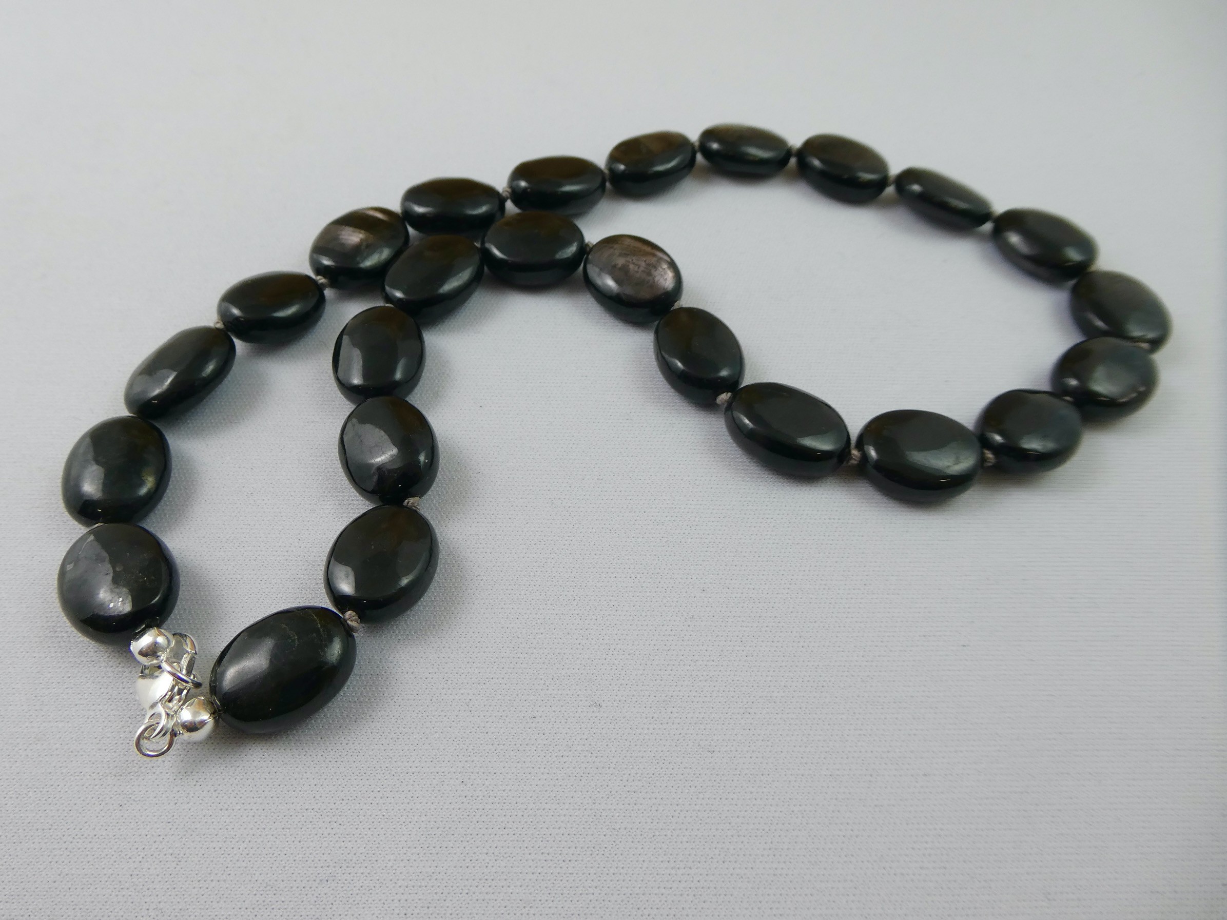 Hypersthen Edelsteinkette, oval flach ca. 16x12mm, Länge 46cm,
