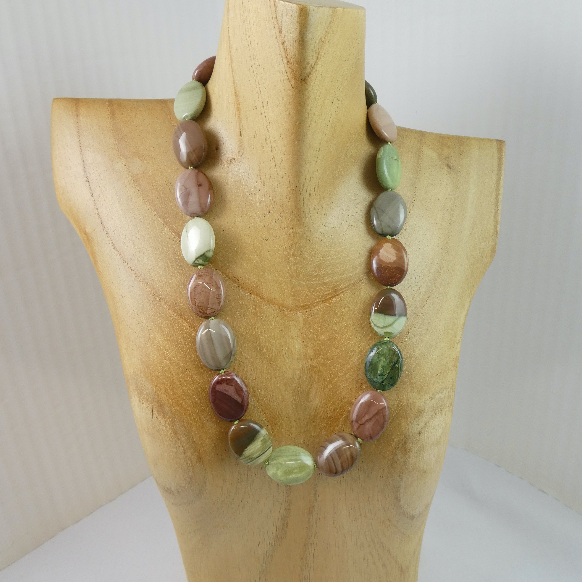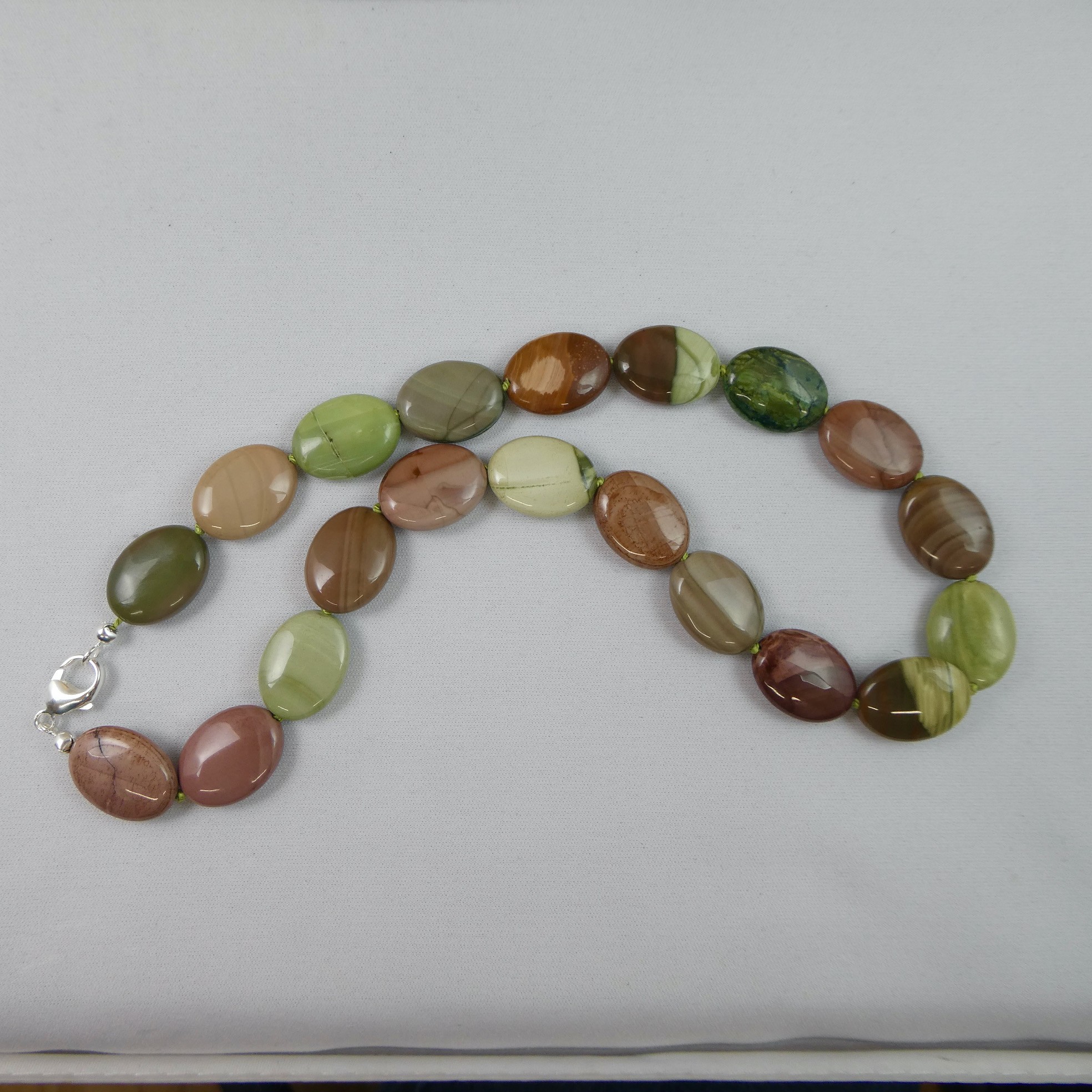 Imperial Jaspis, bunter Jaspis Edelsteinkette oval flach 20x15mm, 45cm Länge;
