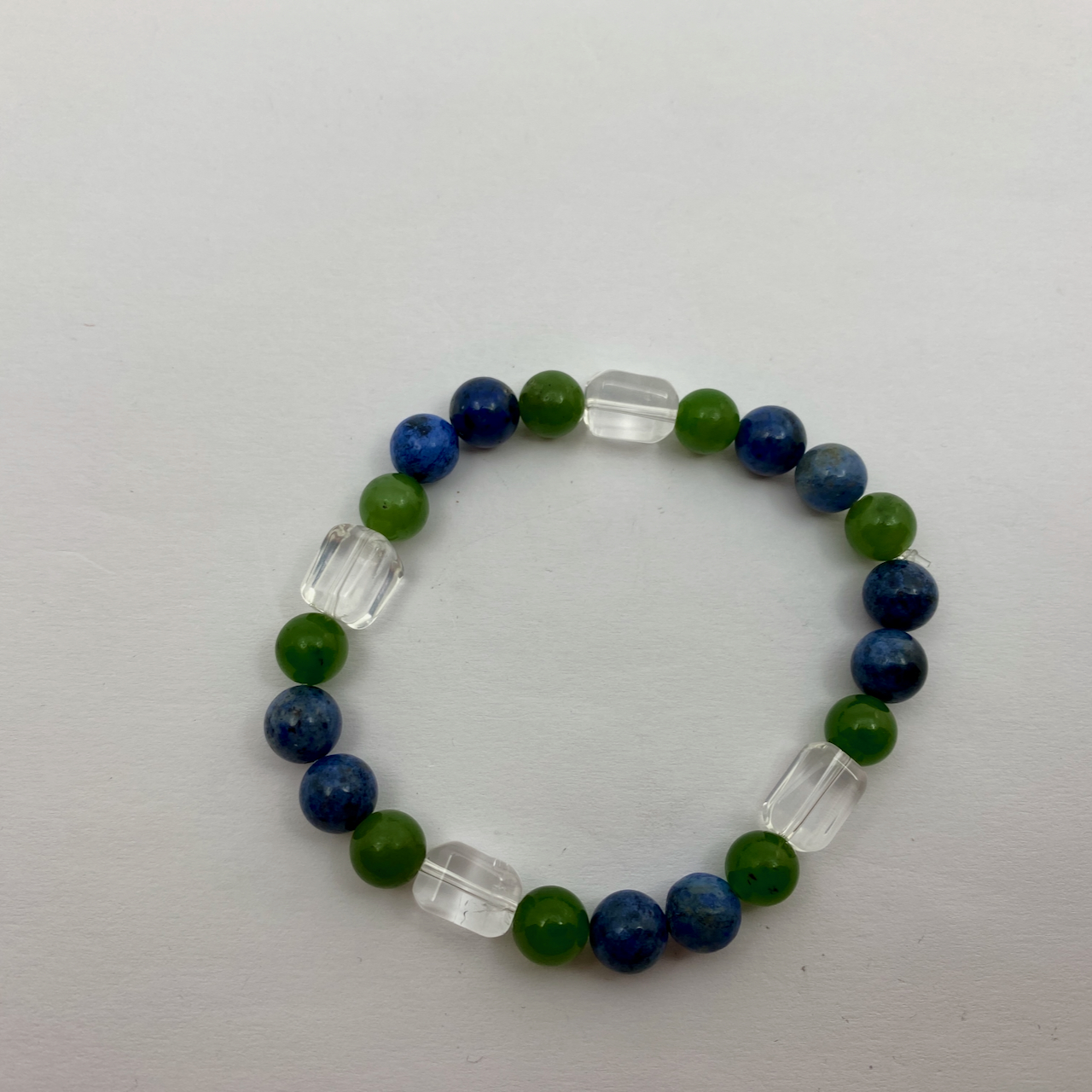 Jade-Nephrit - Dumortierit - Bergkristall Design Armband größer Männerarmband