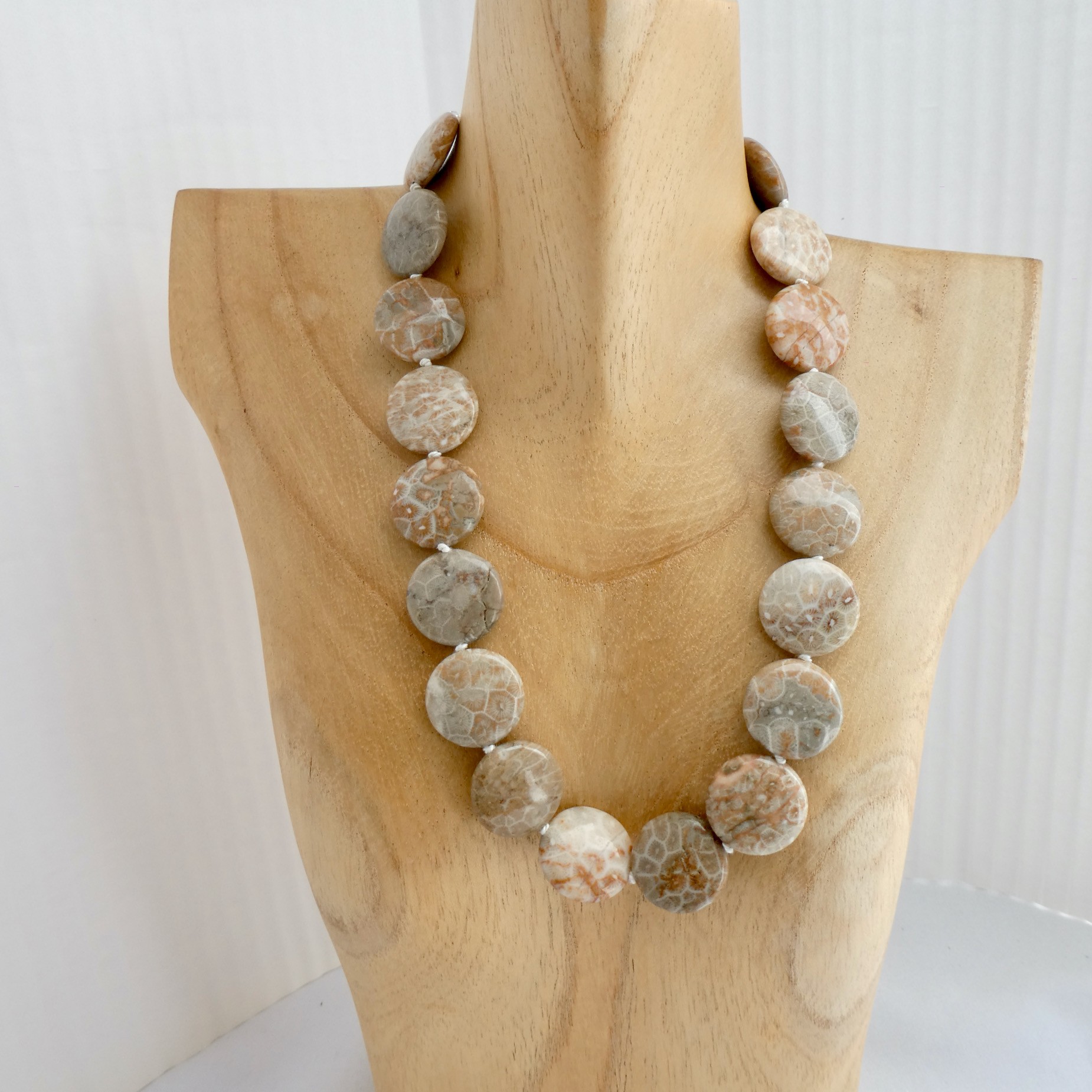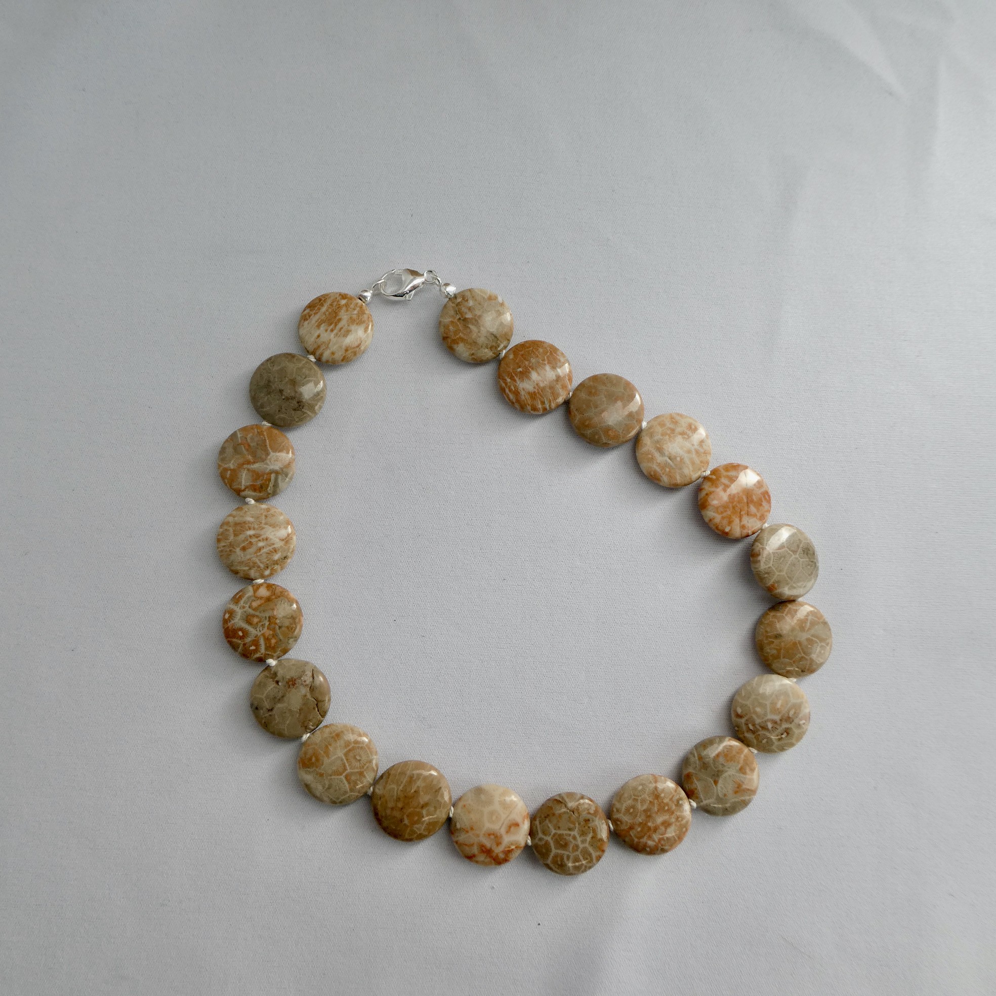 versteinerte Koralle -Petorsky Stein- Edelsteinkette, rund flache Teile ca 20x7mm,