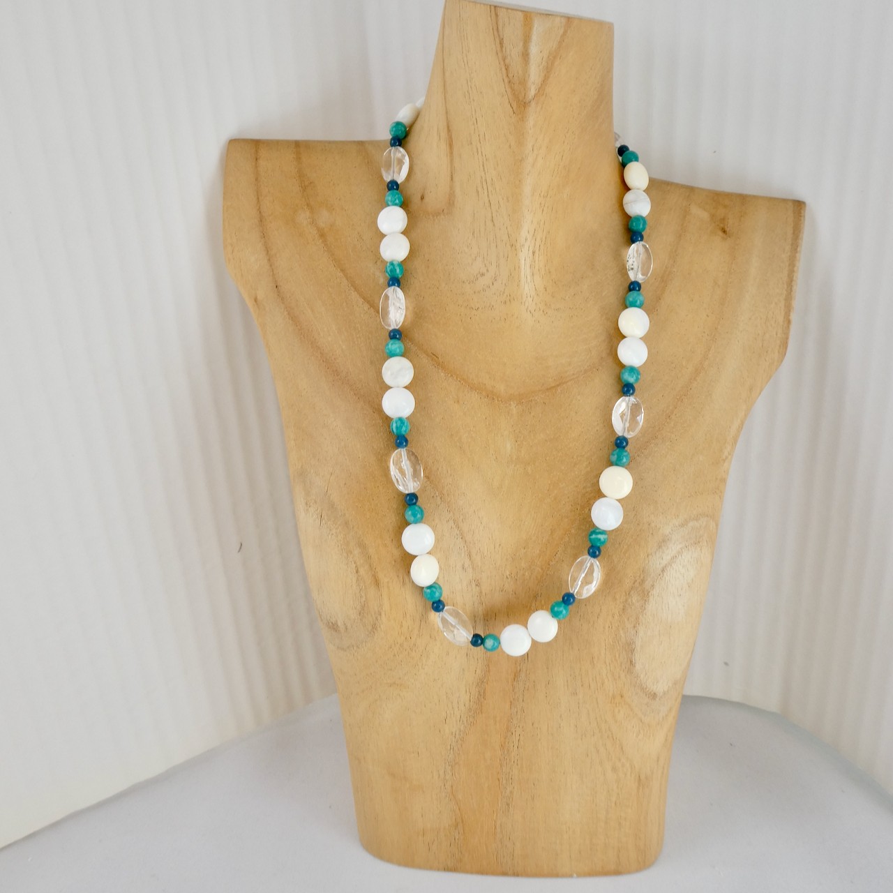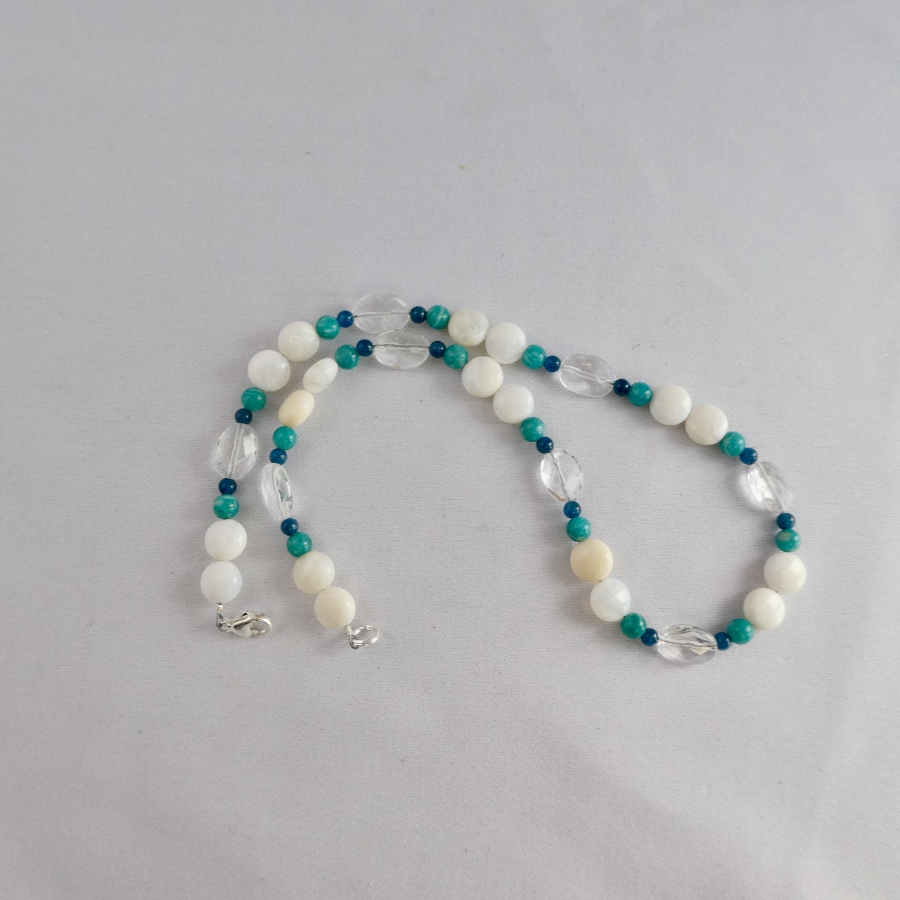 Opal weiß - Milchopal- Amazonit - Apatit blau - Kristall Design Edelsteinkette