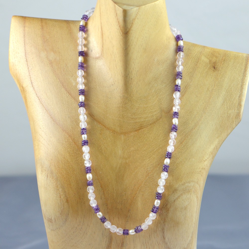 Rosenquarz Amethyst Süsswasser-Perlen Unikatkette Softflex